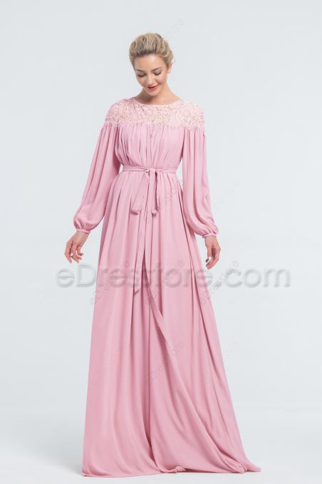 Modest Moss Green Satin Bridesmaid Dresses Long Sleeves